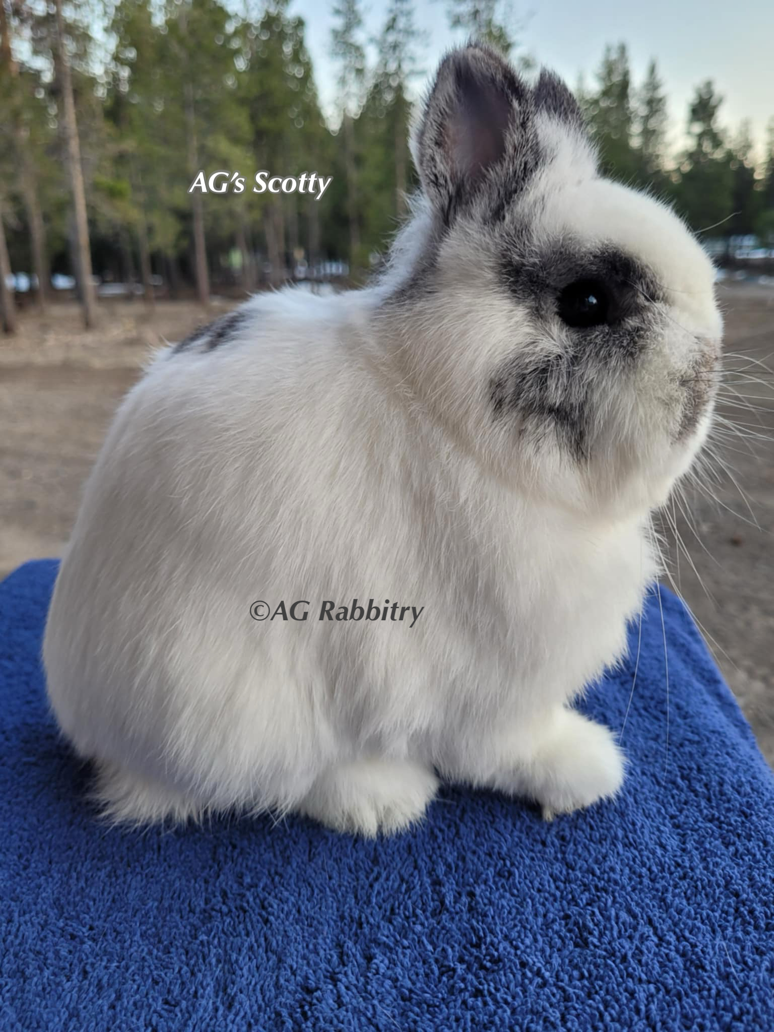 This guest addition to our auction comes from Adrianna Galbreath of AG Rabbitry. He’s a beautiful broken chinchilla buck who has proven himself on the show table and earned himself 12 legs, including a BIS in youth and 4 BOBs! She’s gotten some nice babies out of him, so decided to let this special buck go help someone else’s herd. She knows how hard it can be to find a nice chin, as she tried forever to find chins when she was starting out, but didn’t have much luck. This guy popped out of a chestnut and broken chestnut that go back to Maher’s, Noah’s, and Starstruck lines. He’s got a super head and well-furred ears with a clean broken pattern.